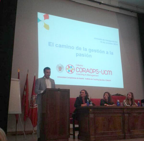 La Universidad Complutense de Madrid y el Instituto de Coaching Ejecutivo CORAOPS han presentado la Cátedra CORAOPS-UCM, en el Salón de Actos de la Facultad de Comercio y Turismo de la Universidad Complutense de Madrid, en un acto con el título "El camino de la gestión a la pasión".